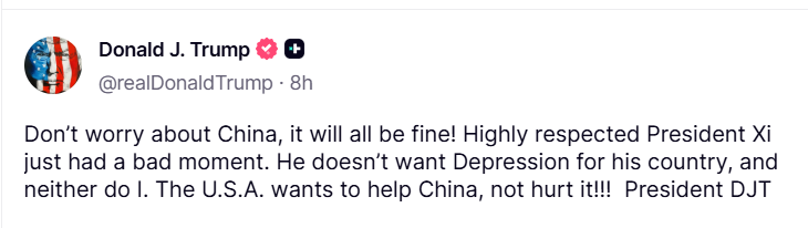 트럼프가 자신의 SNS를 통해 “모든 것이 잘 될 것”이라고 말하자 투자자들이 미중 간 무역갈등 완화의 신호를 감지했다.