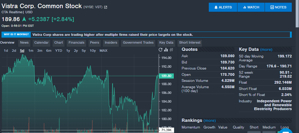 이 전력 및 에너지 회사는 한 주 동안 독자들로부터 강한 관심을 받았다. 이 회사는 목요일에 3분기 재무 실적을 발표했으며, 매출이 49억 7천만 달러로 시장 예상치인 61억 달러를 하회했다. 이는 3분기 연속으로 애널리스트의 매출 추정치를 하회한 것이다. 이 회사는 또한 연간 EBITDA 가이던스를 좁히고 다음 회계연도에 대한 EBITDA 가이던스를 시작했다. 주가는 한 주 동안 하락했지만, 애널리스트들은 목표주가를 상향 조정했다. BMO 캐피털은 아웃퍼폼 등급을 유지하고 목표주가를 236달러에서 245달러로 상향 조정했다. 에버코어 ISI 그룹은 아웃퍼폼 등급을 유지하고 목표주가를 237달러에서 243달러로 상향 조정했다.