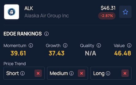주가 움직임: 알래스카항공 주가는 목요일 2.20% 하락했으며, 애프터마켓에서 추가로 0.69% 하락했다.