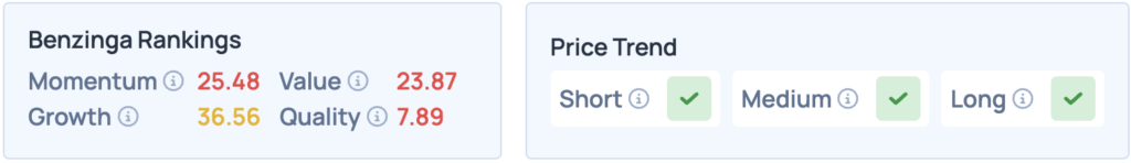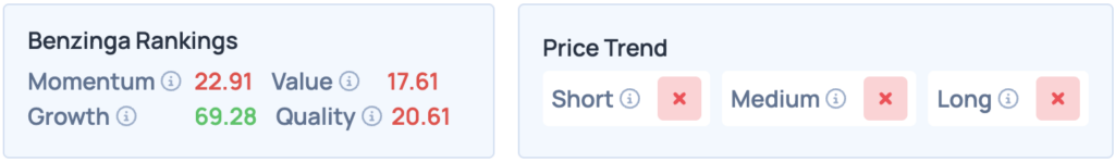 벤징가 랭킹에서 성장 등급은 기업의 과거 매출과 수익 성장률을 기반으로 평가된다. 이 등급은 장기 추세와 최신 분기 실적 보고서와 같은 즉각적인 실적에 동등한 비중을 둔다.