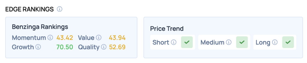 벤징가 엣지 랭킹: 퀄컴은 성장 점수 70.50점으로 특히 강세를 보이고 있다.